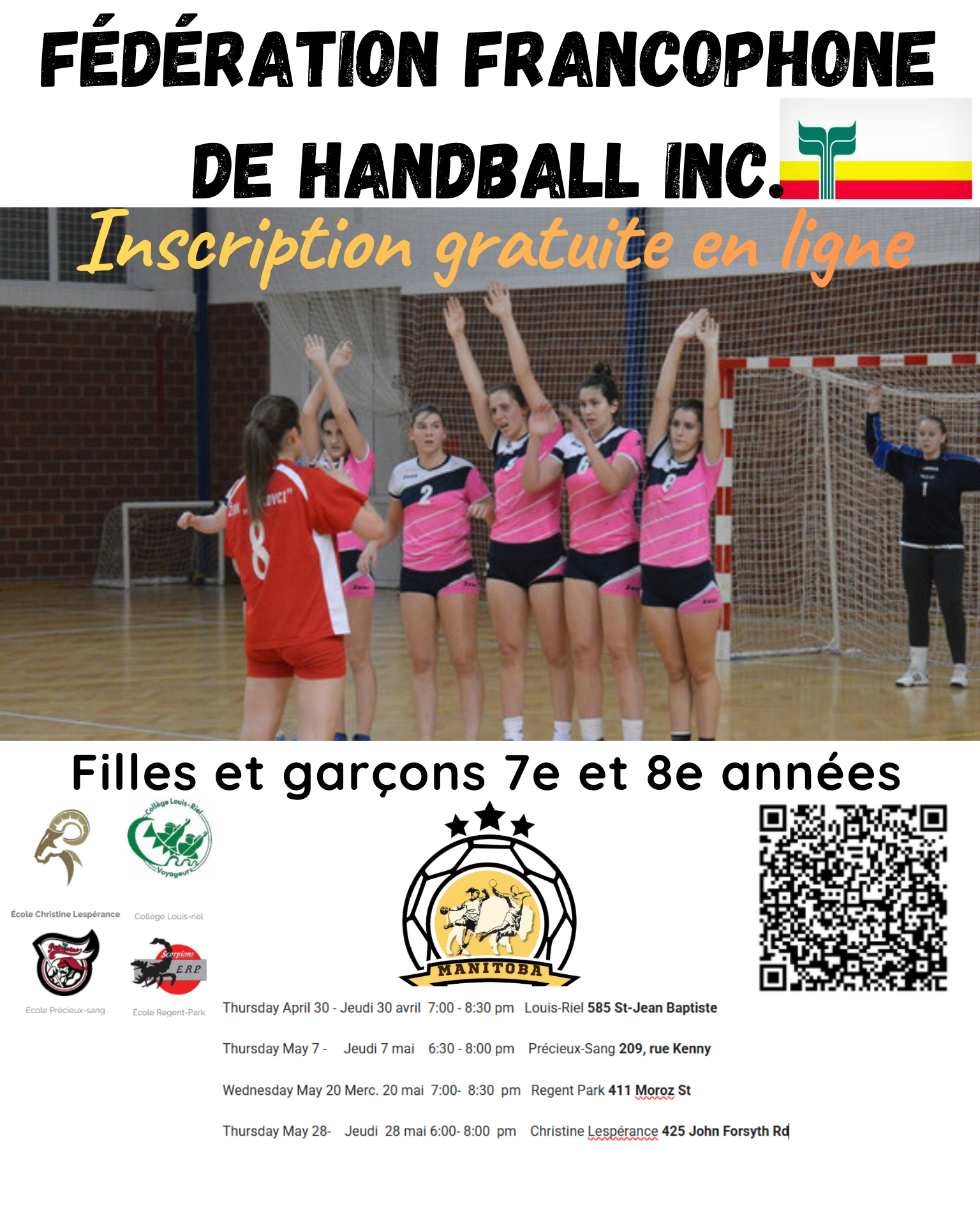 Il suffit de nous appeler au (204) 809-6628 - Fédération de handball du Manitoba.